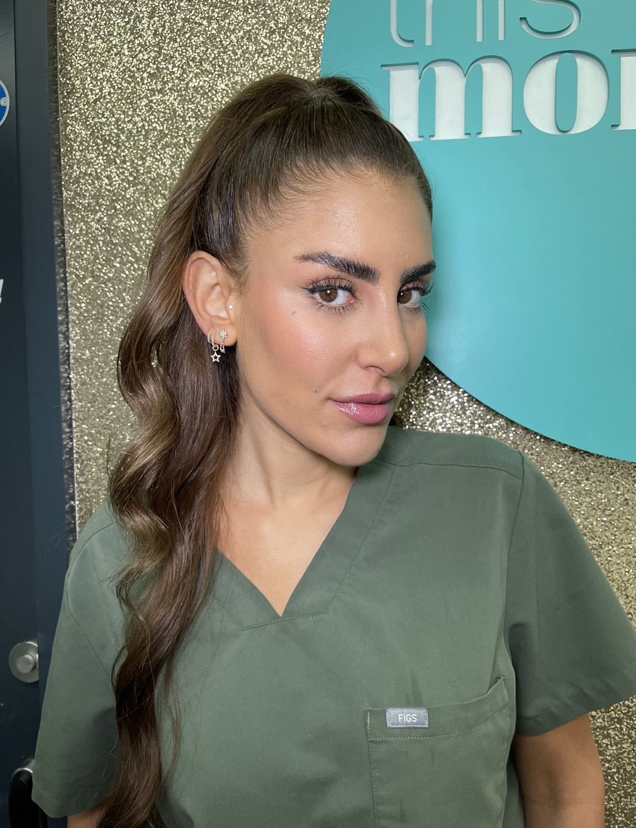 As Dr Rhona is a dental professional we thought having hair back and smooth would be perfect to look professional while keeping up Rhonas top glamorous dentist image.