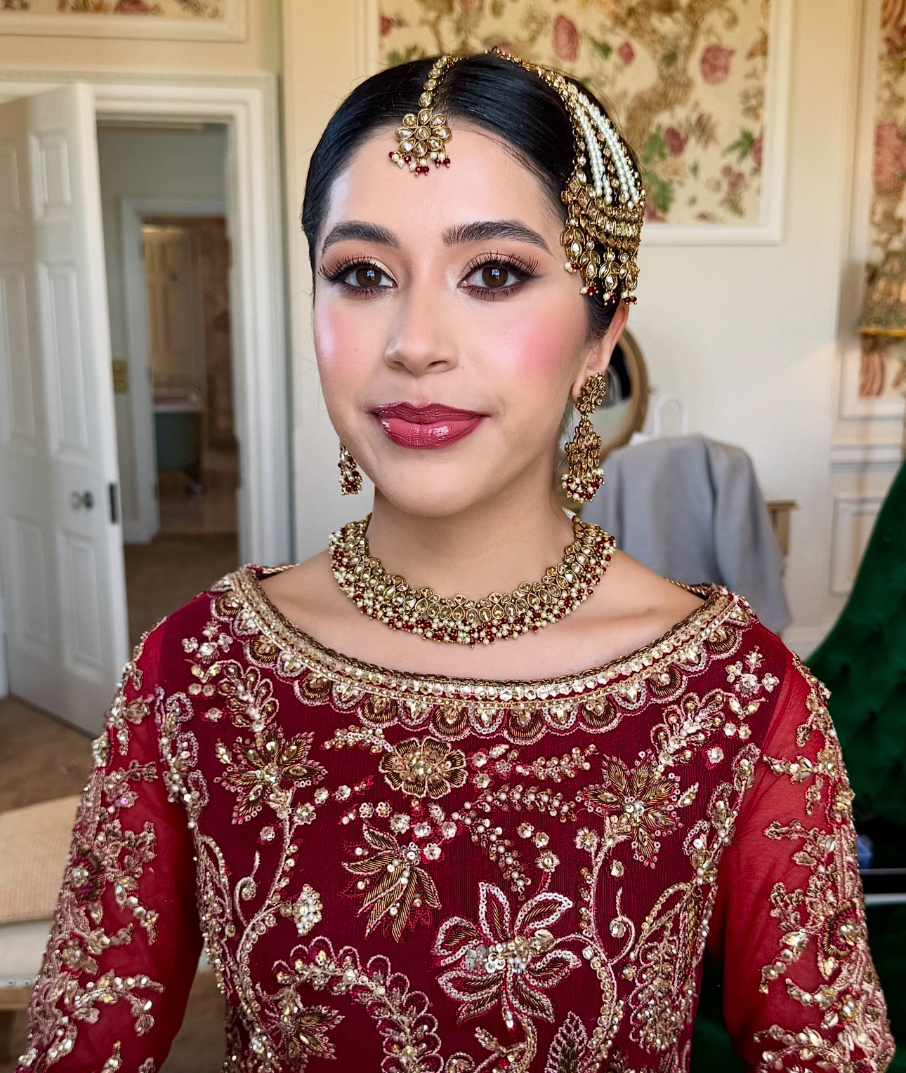 Asian weddings are often long, full-day celebrations, so your makeup needs to last from morning ceremonies through evening receptions. I use long-wearing, high-quality products to ensure your makeup remains flawless, comfortable, and camera-ready throughout your wedding day — whether in London or at an international destination.